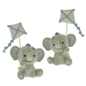 Bomboniera battesimo e nascita, nuova collezione 2023. Statuina elefantino con aquiloneย in resina. Colore azzurro o rosa in 2 posizioni assortite.