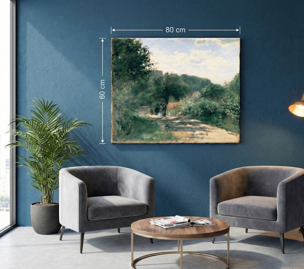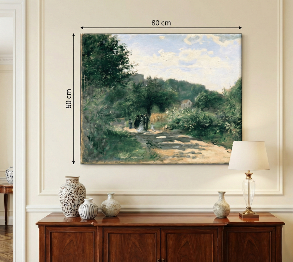 Questa riproduzione di “Strada a Louveciennes” è perfetta per aggiungere un tocco di raffinatezza storica e di bellezza naturale a qualsiasi stanza. È ideale per il soggiorno, la camera da letto o uno studio professionale, portando con sé la pace e la luce della pittura di Renoir.