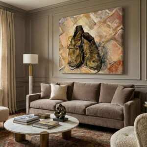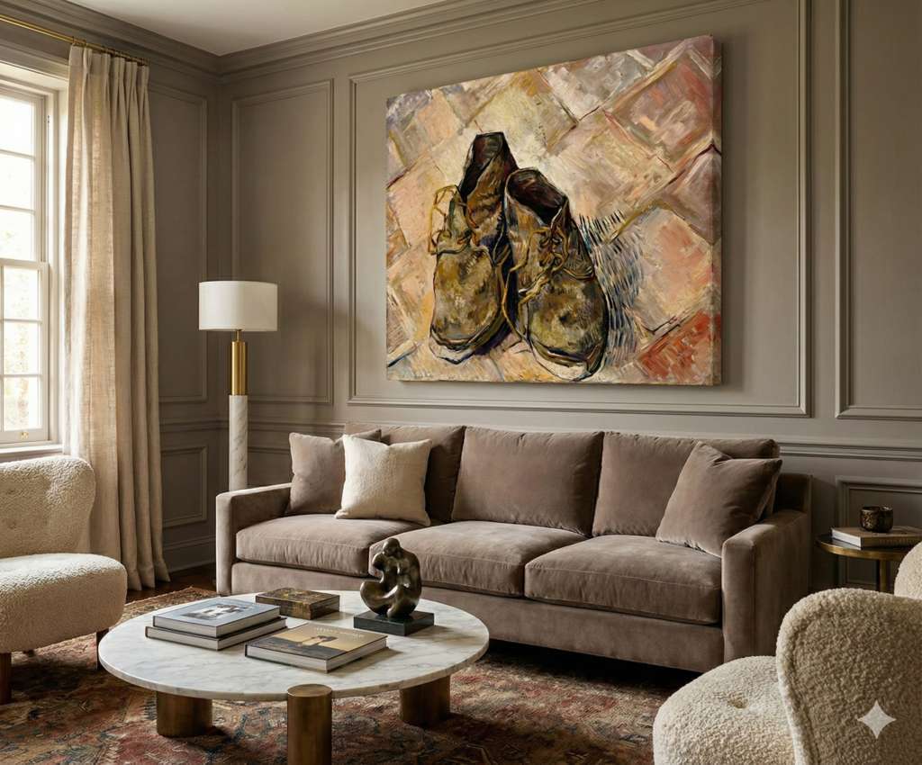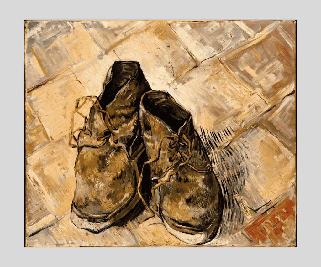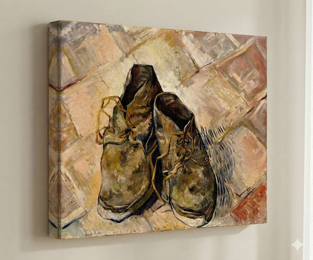 Il Capolavoro Originale: Un’Icona dell’Arte Moderna Realizzato da Vincent van Gogh nel 1886 durante il suo periodo parigino, “Un Paio di Scarpe” è molto più di una semplice natura morta. Infatti, queste vecchie scarpe di pelle logore, probabilmente acquistate a un mercatino, diventano un potente simbolo nelle mani dell’artista. Esse rappresentano l’umanità, la fatica e la vita vissuta. Attraverso pennellate dense, materiche e vibranti, Van Gogh trasforma così un oggetto umile in un ritratto psicologico profondo. Inoltre, i toni terrosi e caldi dell’ocra e del marrone, stesi con energia sulla tela, restituiscono una sensazione tattile quasi reale.